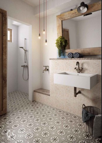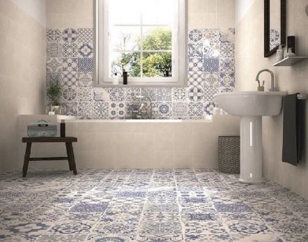 Tuy là không gian phụ trong nhà nhưng bạn cũng đừng bỏ qua việc trang trí cho phong tắm của mình. Một mẫu nội thất khá bắt mắt với gạch bông phối ngẫu nhiên ốp tường sẽ đem lại sự tươi mới trong không gian. Bạn hoàn toàn có thể lựa chọn bất cứ màu sắc nào phù hợp với phong thủy, cũng như sở thích của các thành viên trong gia đình để trang trí cho nội thất căn phòng.