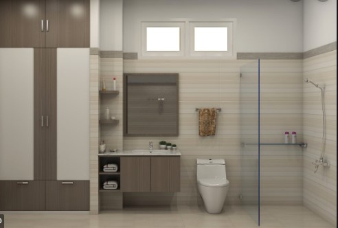 Cũng giống như các khu vực sinh hoạt khác trong ngôi nhà, phòng tắm cũng cần được thiết kế có cái nhìn dễ chịu thông qua kết hợp giữa màu sắc và ánh sáng tạo nên suwjnhaif hòa. Ở các thiết kế nhà ống, nhà phố hiện đại ngày nay. Các Kiến trúc sư thường đặt vị trí phòng tắm ở cuối nhà hoặc cạnh giếng trời, khoảng thông tầng. Điều này giúp cho căn phòng luôn được bổ sung ánh sáng tự nhiên tránh sự ẩm mốc, đồng thời giúp không khí luôn lưu thông thoáng đãng nhất.