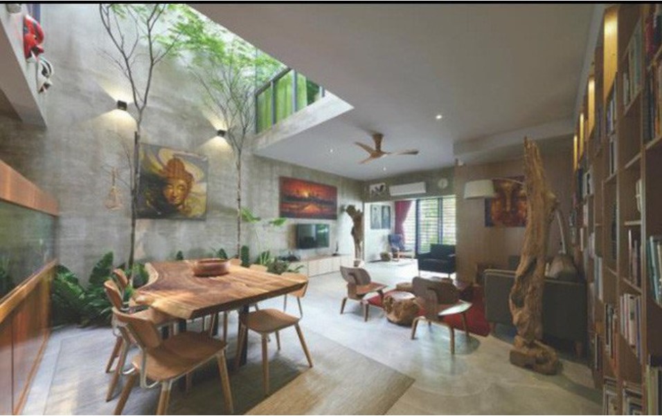 Với những căn biệt thự thì giếng trời được tận dụng làm khoảng không thư giãn cho gia đình.