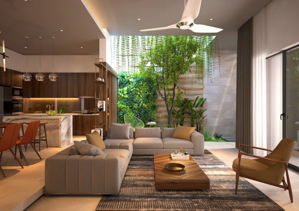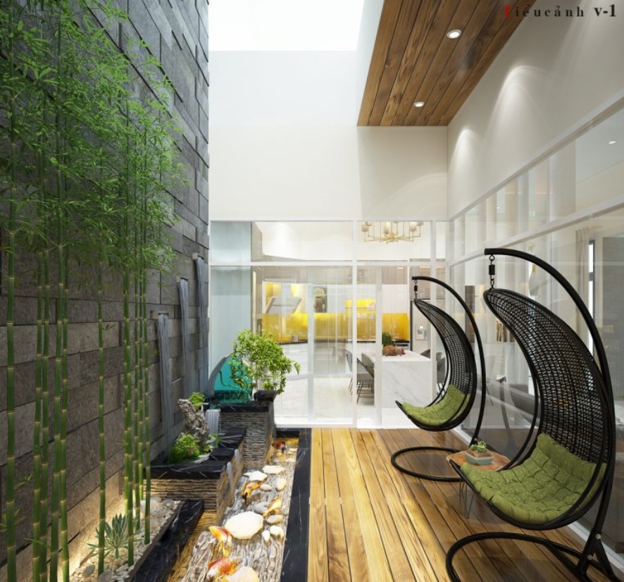 Kết hợp vườn cảnh và giếng trời.