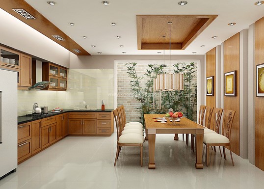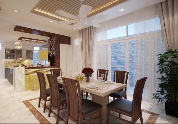 Bố trí không gian hiện đại tại khu vực phòng ăn và phòng bếp